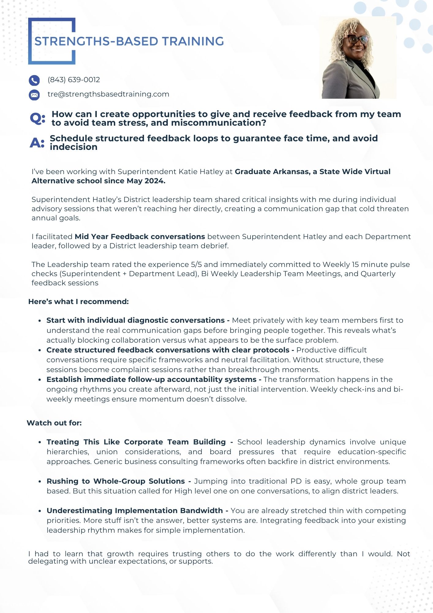 I help Superintendents build confident, committed teams and stop staff turnover before it starts
